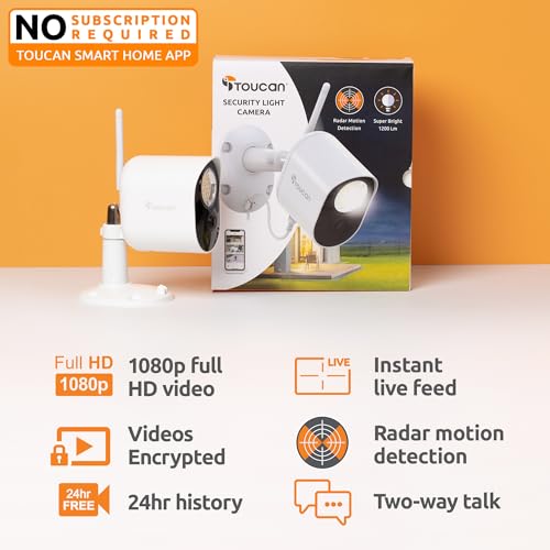 TOUCAN Outdoor Security Camera & 1200 Lumen Floodlight with RADAR Motion Detection, CCTV Camera Systems Outdoor, Security Lights Outdoor Motion Sensor