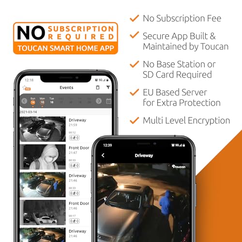 NO MONTHLY SUBSCRIPTION FEE – The TOUCAN owned app features multi level encryption cloud storage, with an EU based server for even more protection, ensuring 24/7 protection. With no requirements for a base station or SD card, your home security is in safe hands.